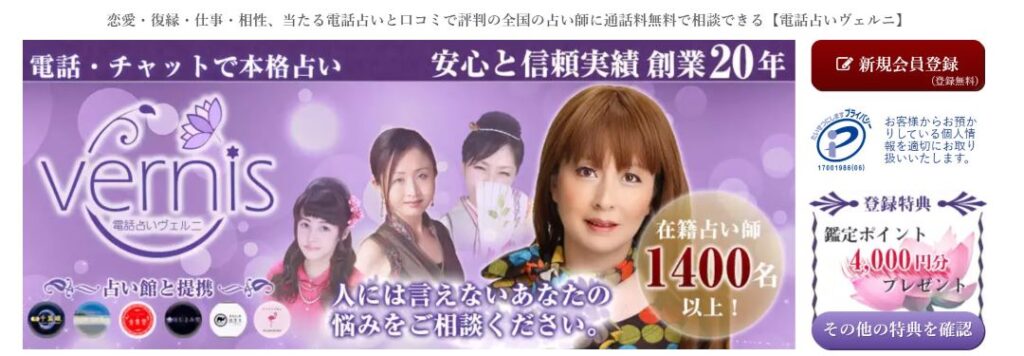 電話占いヴェルニは、創業18年の歴史を持つ老舗電話占いです。